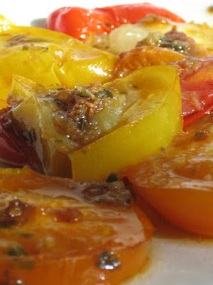 Tillbaka till verkligheten. Tomt i kylen. Tomt i huvudet. Tomt i magen. Trött, sliten, kluven och extremt frustrerad över allt för många olika åtaganden och viljor i huvudet så orkar jag inte fixa och trixa allt för mycket i köket. Så en sväng till affären och där låg röda, gula och orange tomater och ropade på mig "Ta mig! Ät mig! Och jag också! Stek mig!" Och så fick det bli.